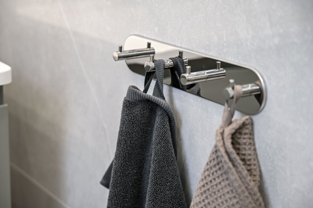 Kroken monteras enkelt med förmonterad självhäftande 3M-tejp – ingen borrning krävs. Perfekt för dig som vill undvika skador på kakel eller vägg.