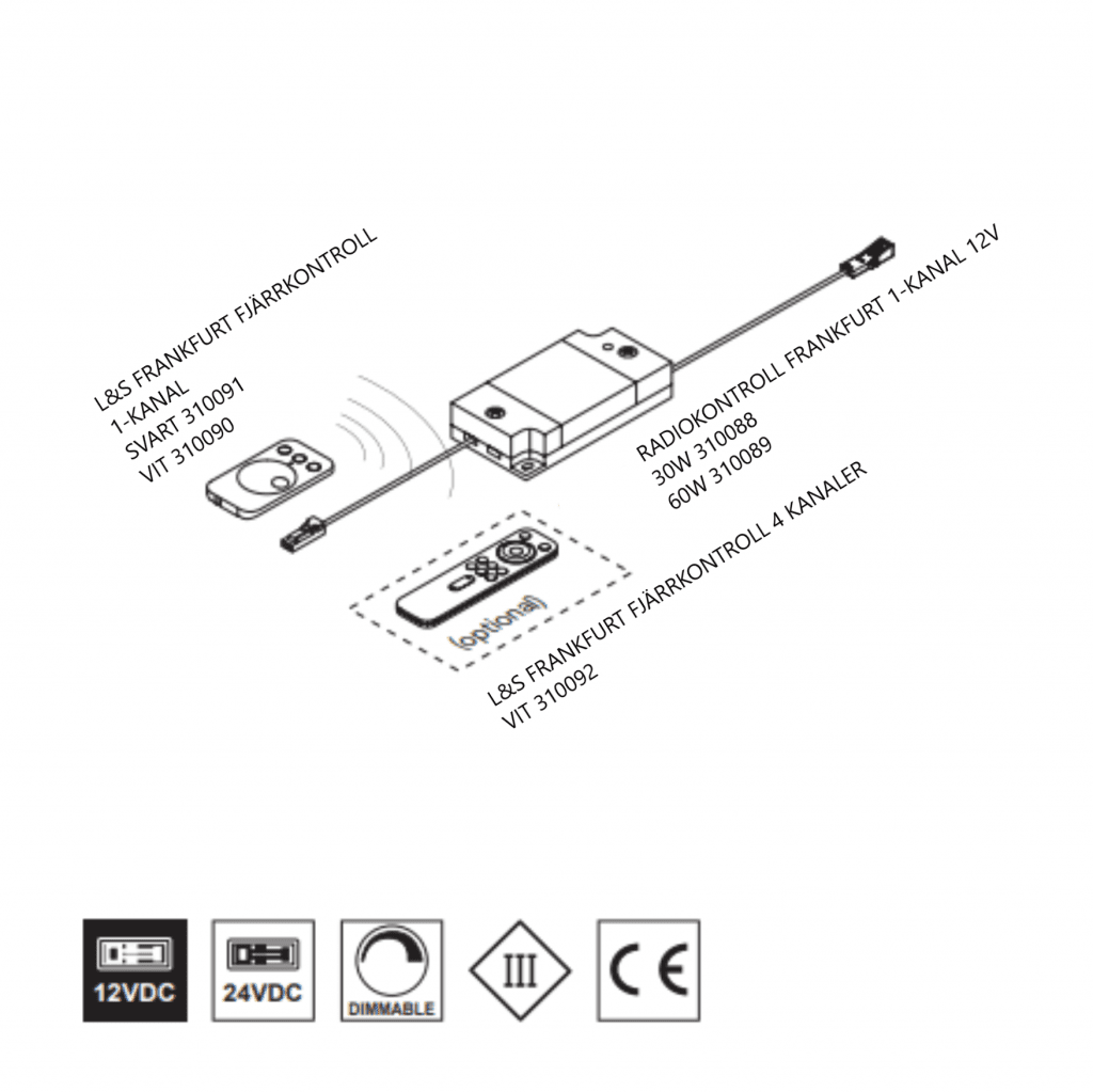 Detta drivdon med radiokontroll används för att styra belysning med fjärrkontroller eller touchknappar.