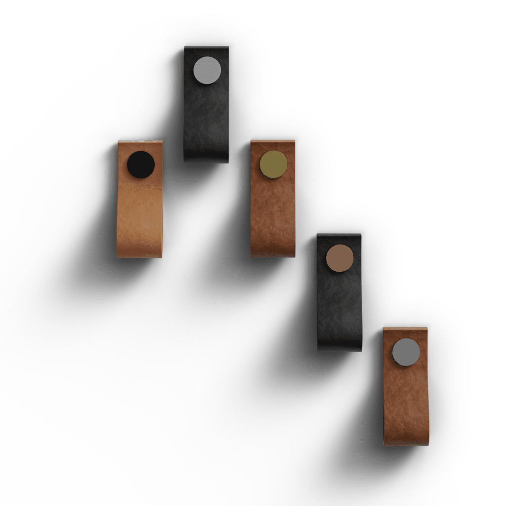 Ari är en modern läderknopp som kombinerar äkta svenskt läder med en knapp i matt grå metall. Den ger en varm och naturlig känsla som passar lika bra i kök som på möbler och garderober. En stilren och tidlös detalj som lyfter helheten utan att ta över uttrycket.
