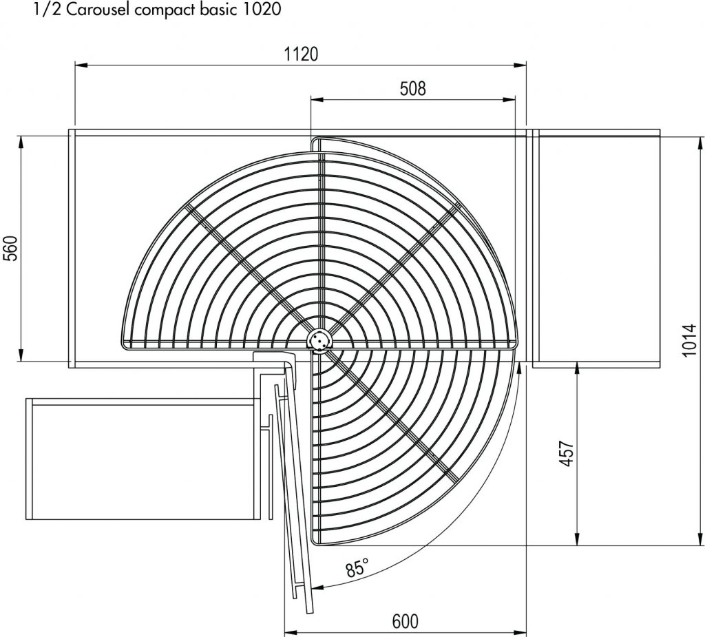 Den mörka antracitfärgen ger ett sobert och modernt uttryck som passar perfekt i både samtida och mer tidlösa kök. Halvkarusellens form gör att innehållet enkelt roteras fram, vilket ger bra överblick och minskar behovet av att “krypa in” i hörnskåpet. Ett genomtänkt val för dig som vill kombinera funktion, hållbarhet och estetik.